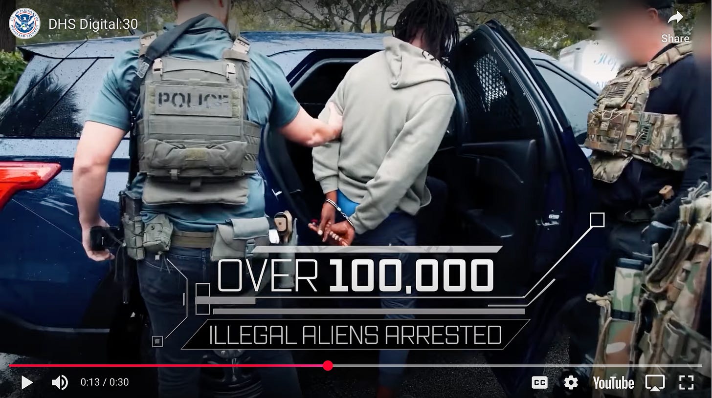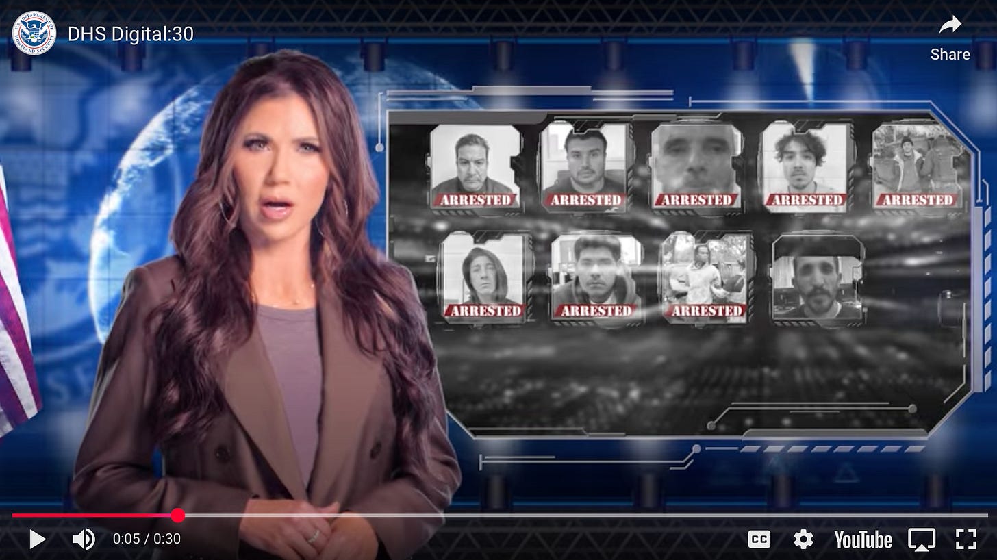 Why else would the ad blow its own horn, using words like “rapist” and rolling footage of mugshots? Why else would it tout a “100,000 arrested?” Why else would the website brag about self-deportation costing American taxpayers 70% less? And why else would Noem promise that “under President Trump, America’s laws, borders, and families” would be protected?