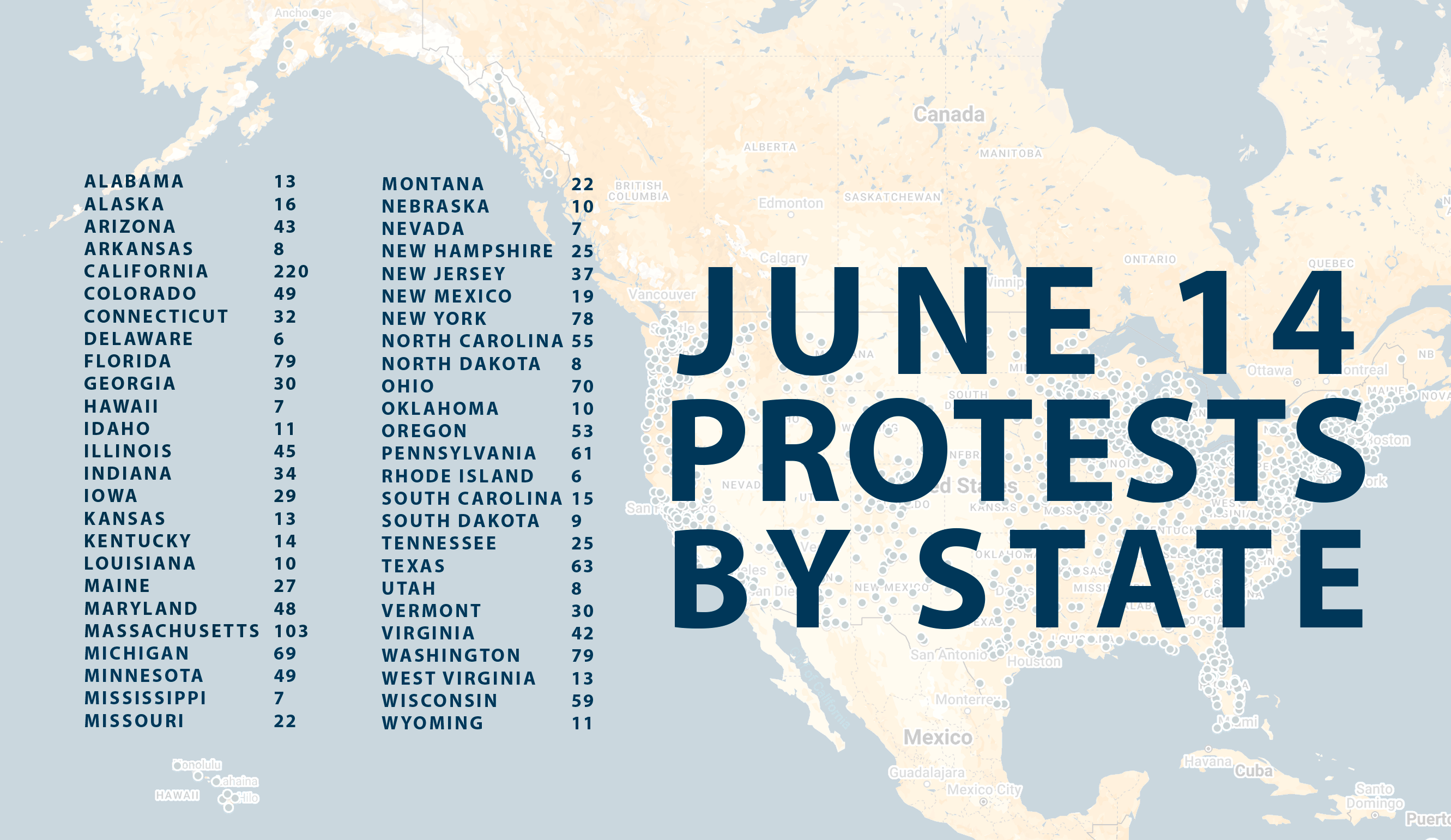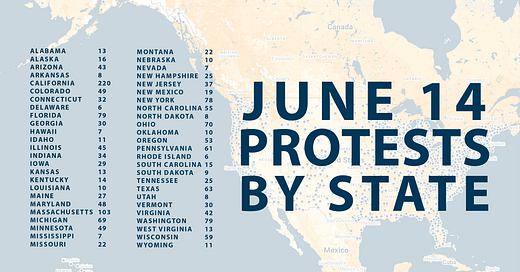 I apologize for the lateness of the list. The list for June 14 is a doozy. There will be over 1800 protests that day.